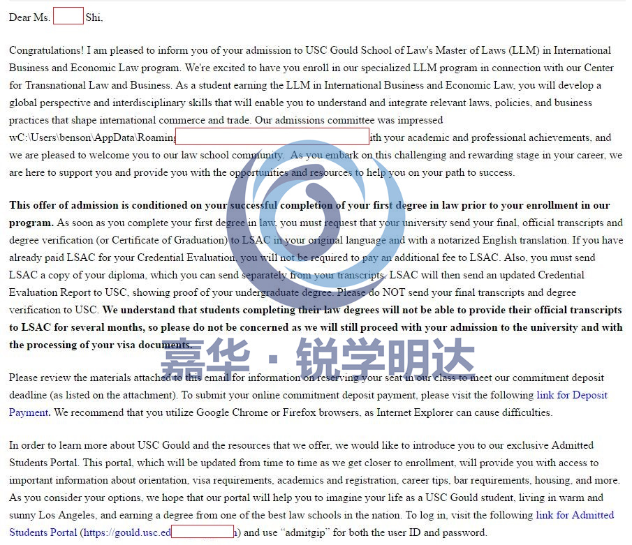 嘉华顾问老师带领学生规划实习跟实践经历,多次打磨个性化文书,通过文书展示了S同学的自我特色和能力,最终获得美国南加州大学跟波士顿大学的硕士录取,成功实现了获得美国前30院校录取的梦想。
