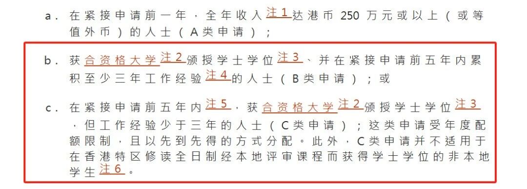 其中B类和C类对申请者的本科学历有要求,需是本科毕业于符合条件大学才能申请。