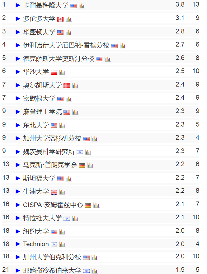 同时,计算机理论领域也是中国院校的弱项,在Top20中,无一所中国院校上榜。