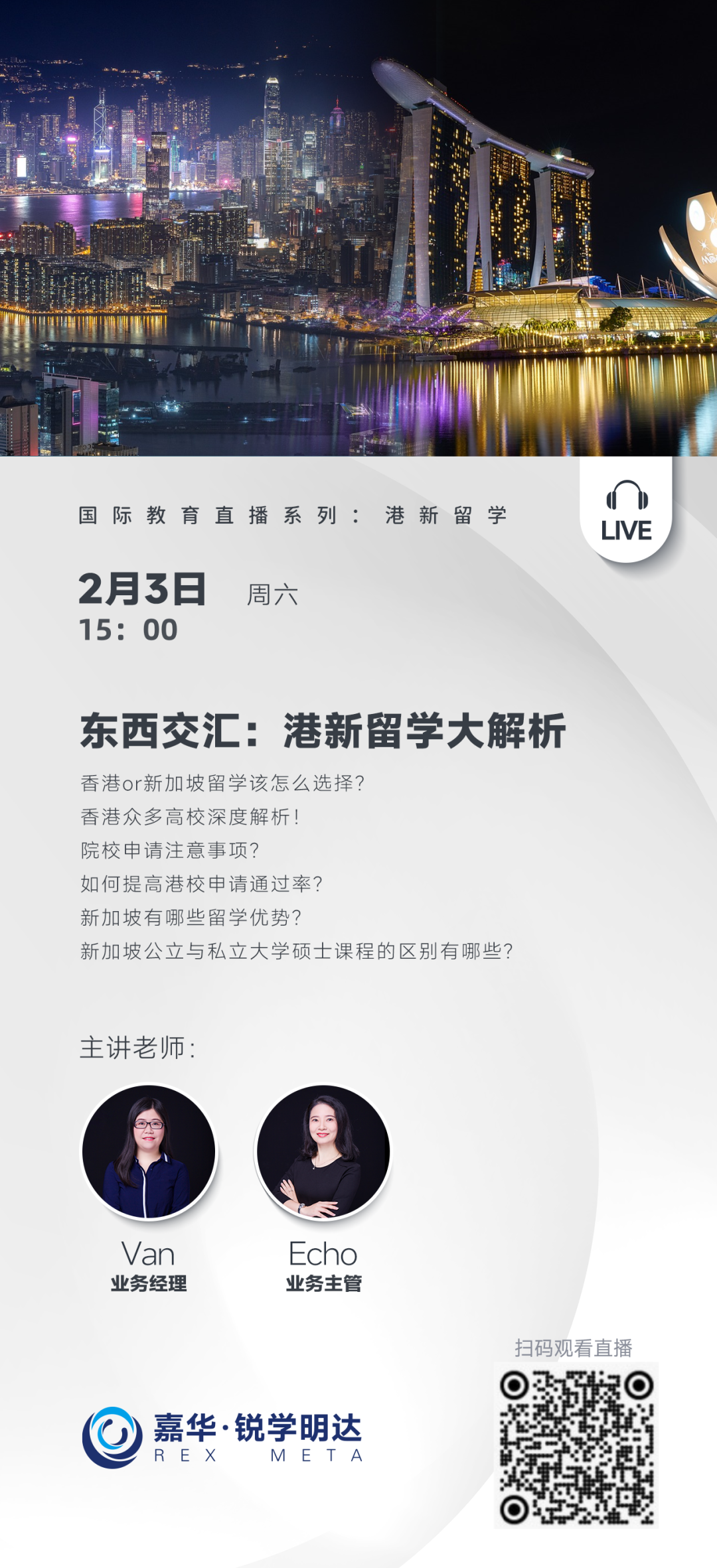 【直播预告】2月3日(周六)15:00 东西交汇:#港新 留学大解析