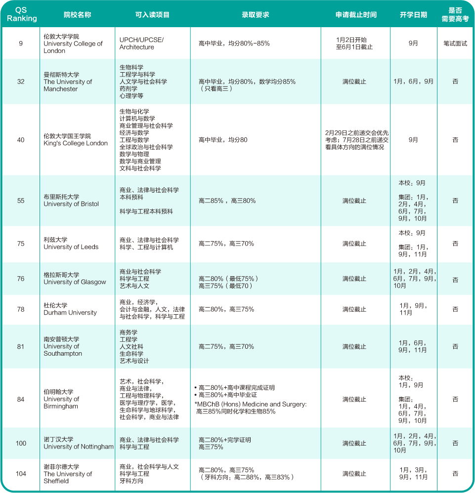 适合人群:高考成绩理想,想要入读世界TOP 50 名校