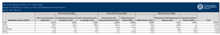 美国移民局公布了2024财年第二季度的I-140审理情况。